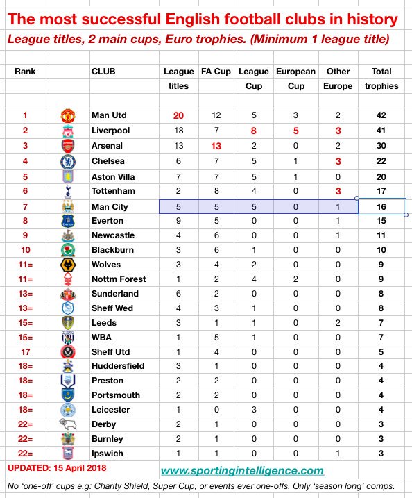 E P L W O R L D No Twitter أنجح الاندية في تاريخ انجلترا مجموع البطولات