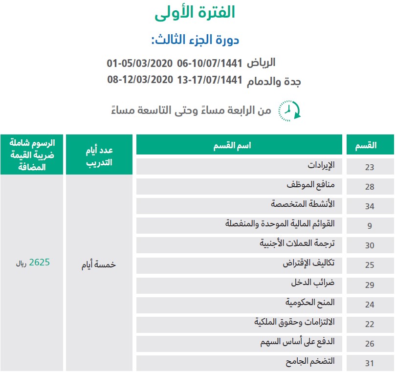 الهيئة السعودية للمحاسبين القانونيين الجداول التدريبية